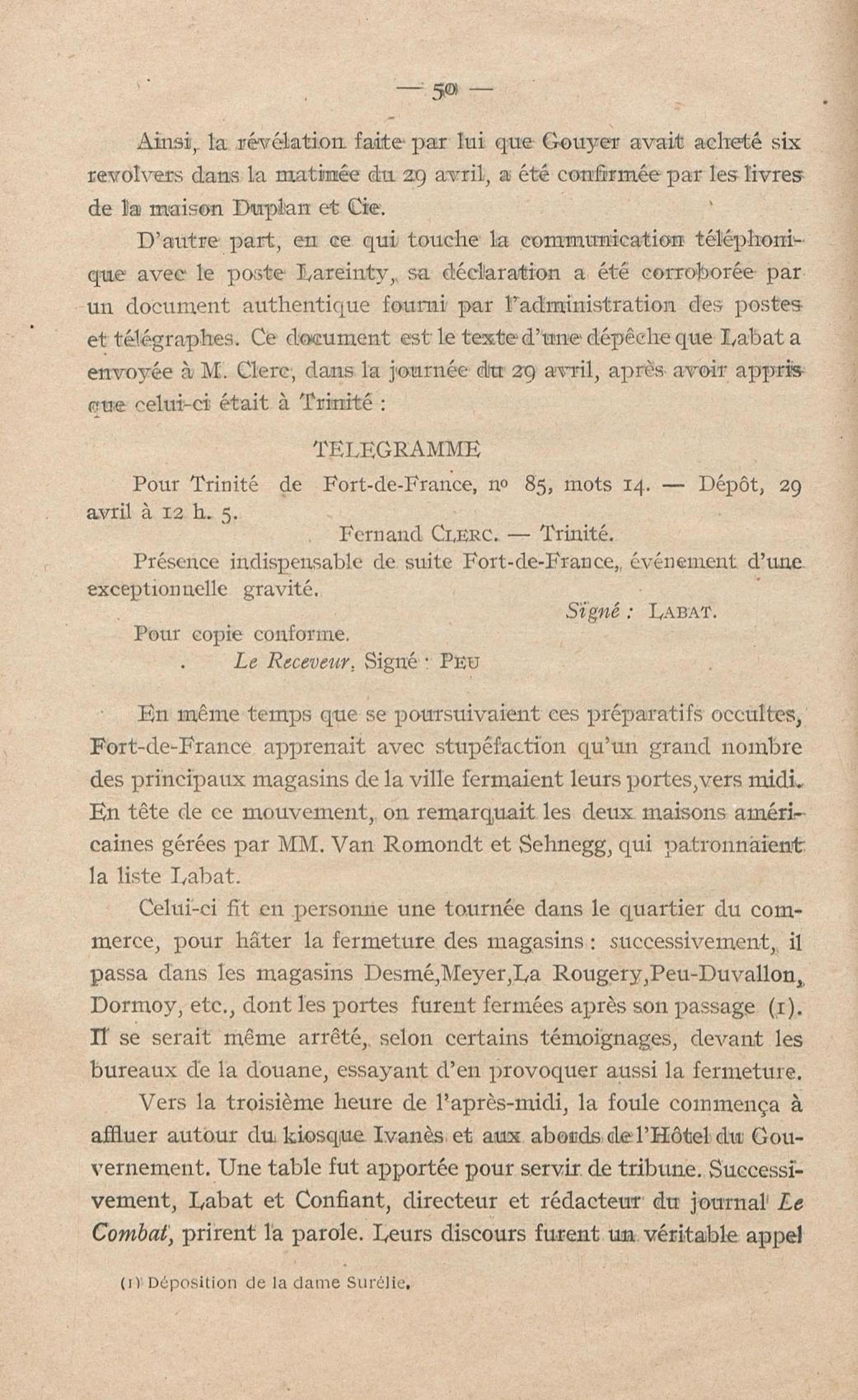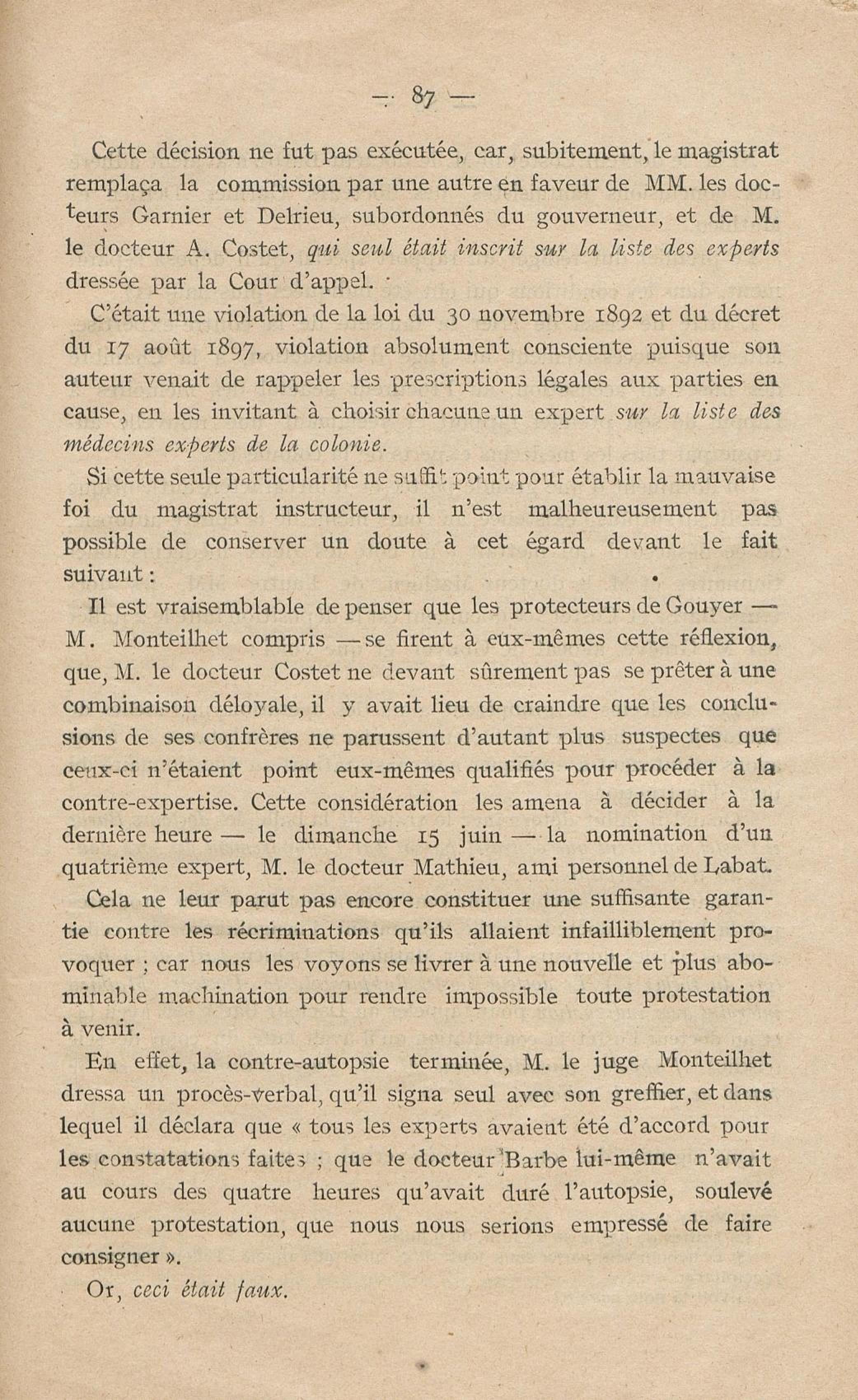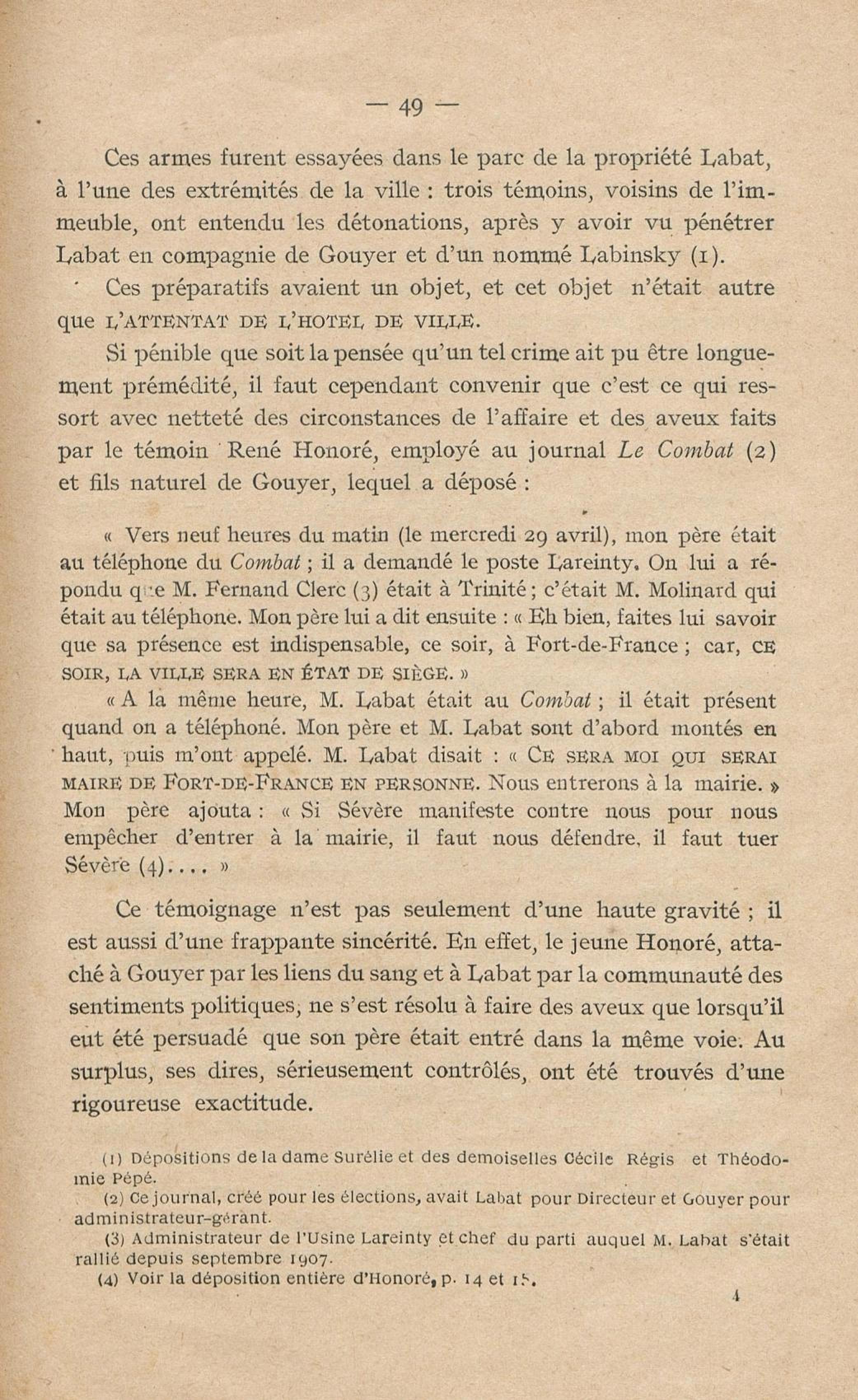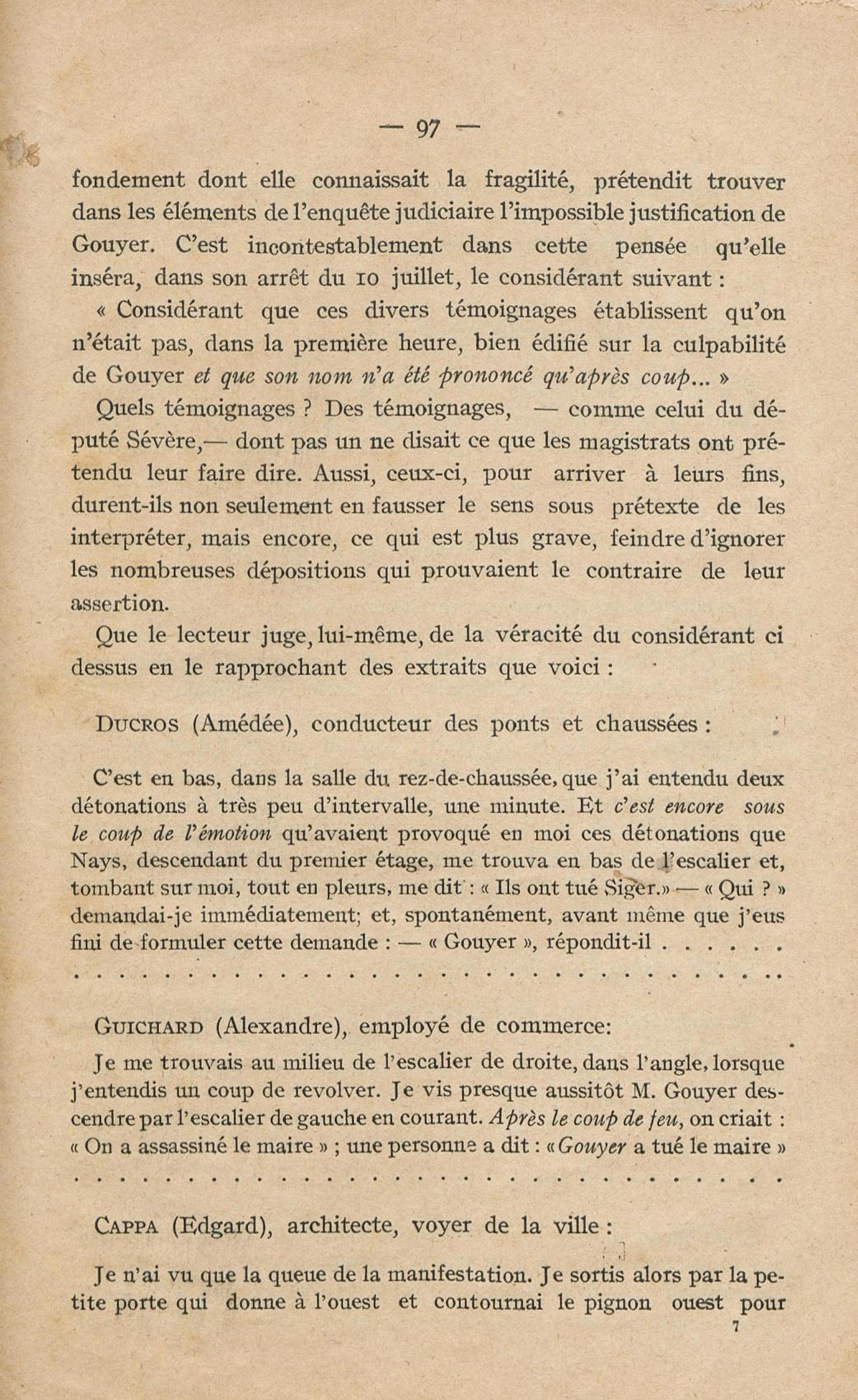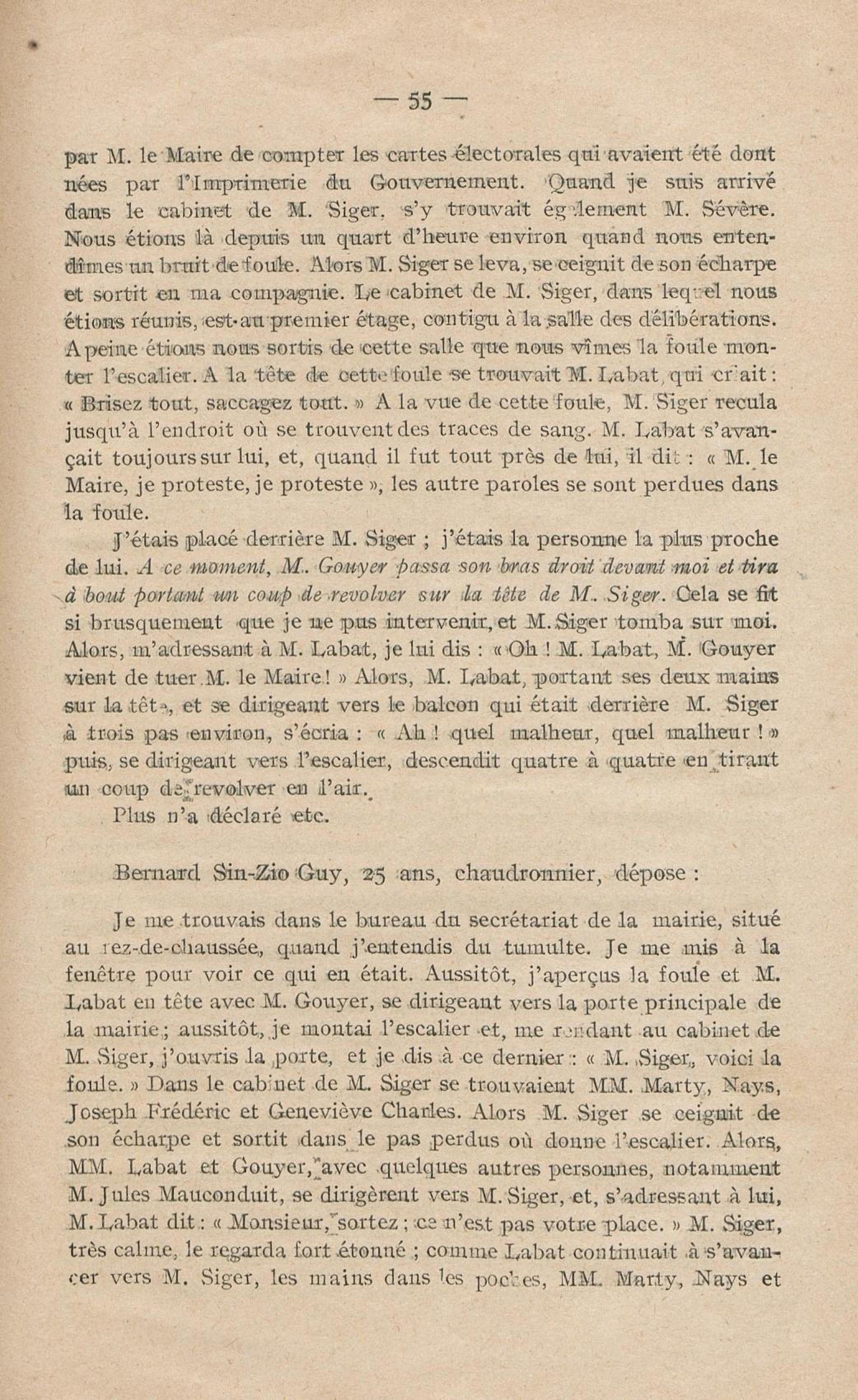 Conditions dans lesquelles s'est faite l'instruction du meurtre de M. Siger, Maire de Fort-de-France