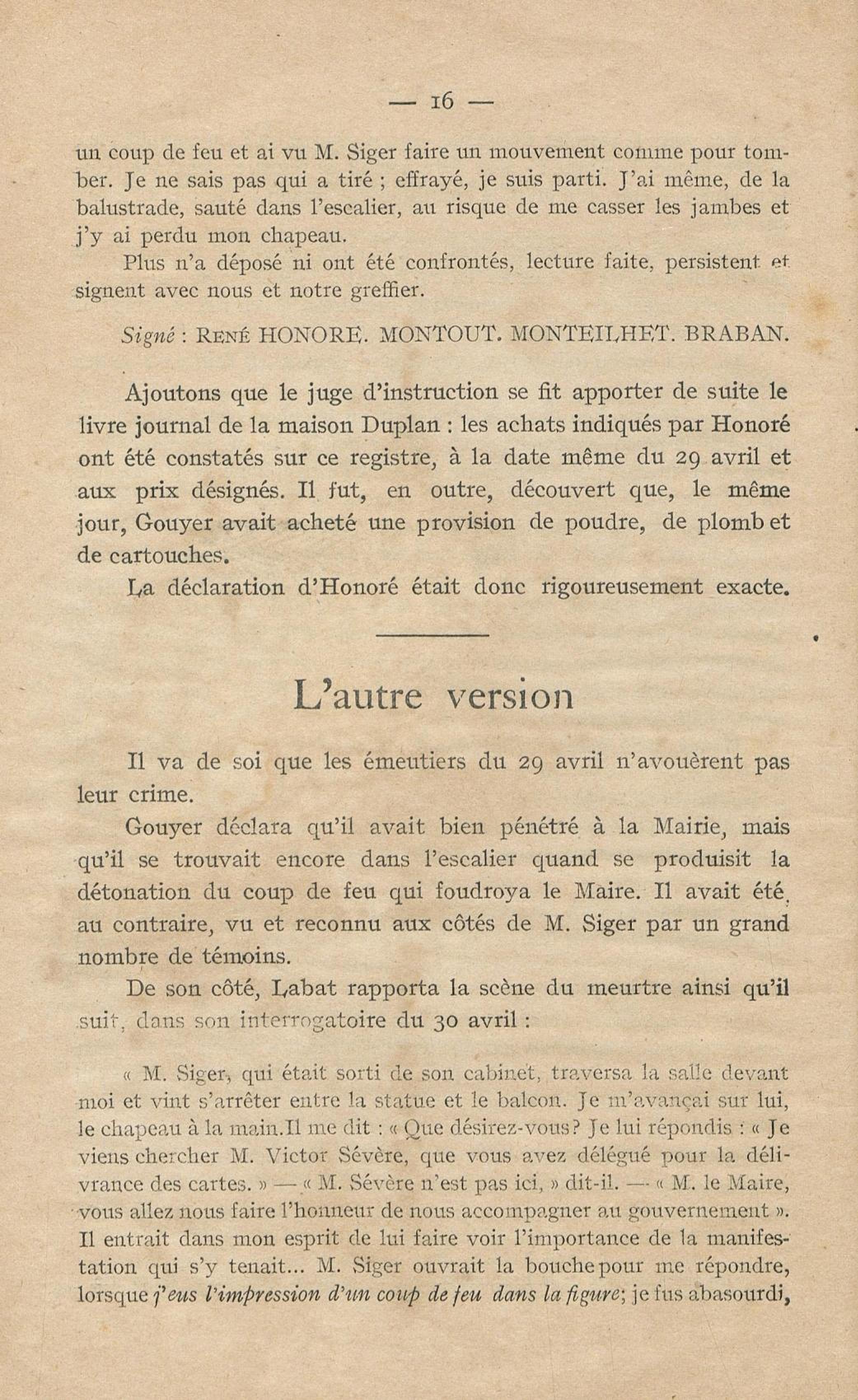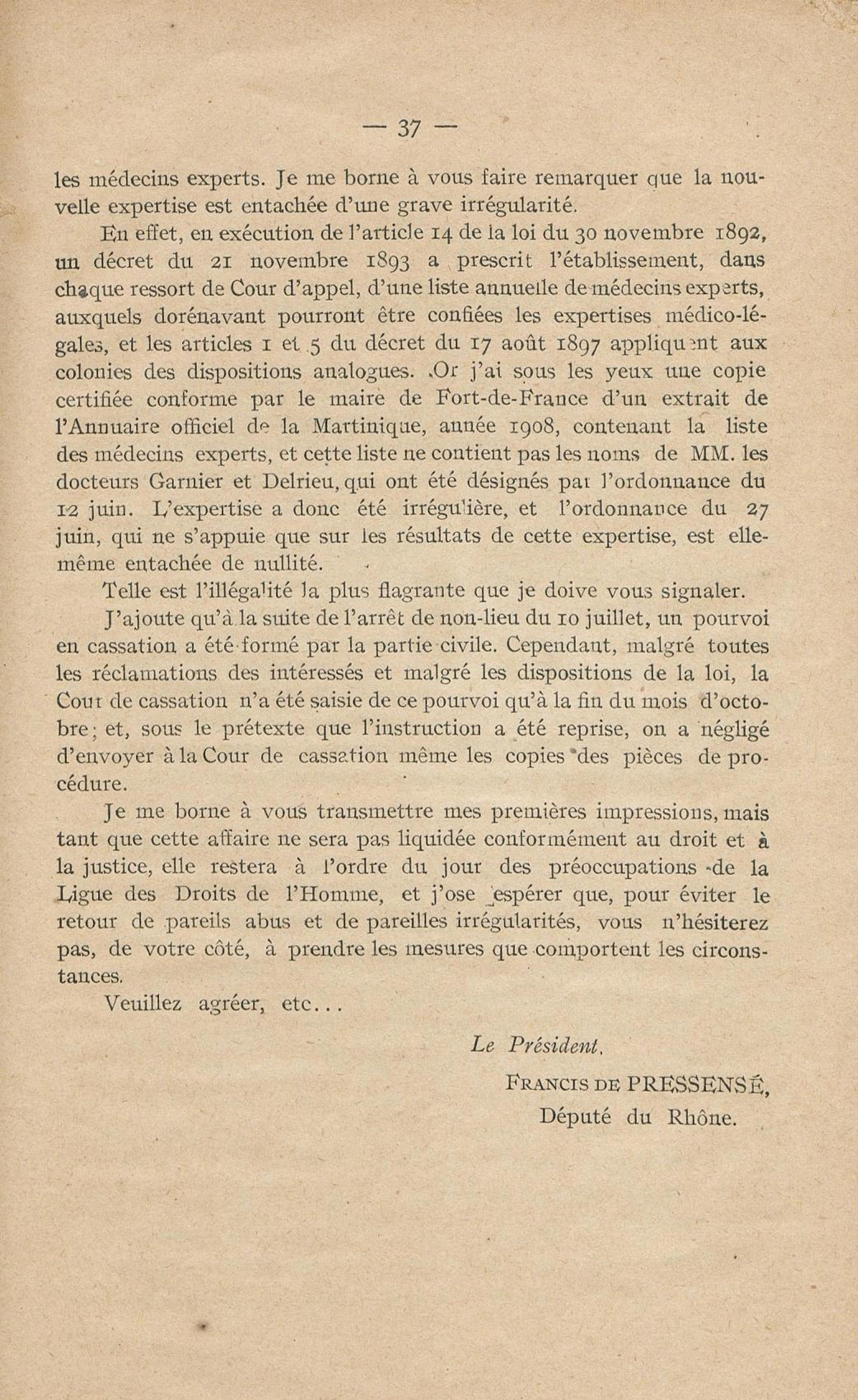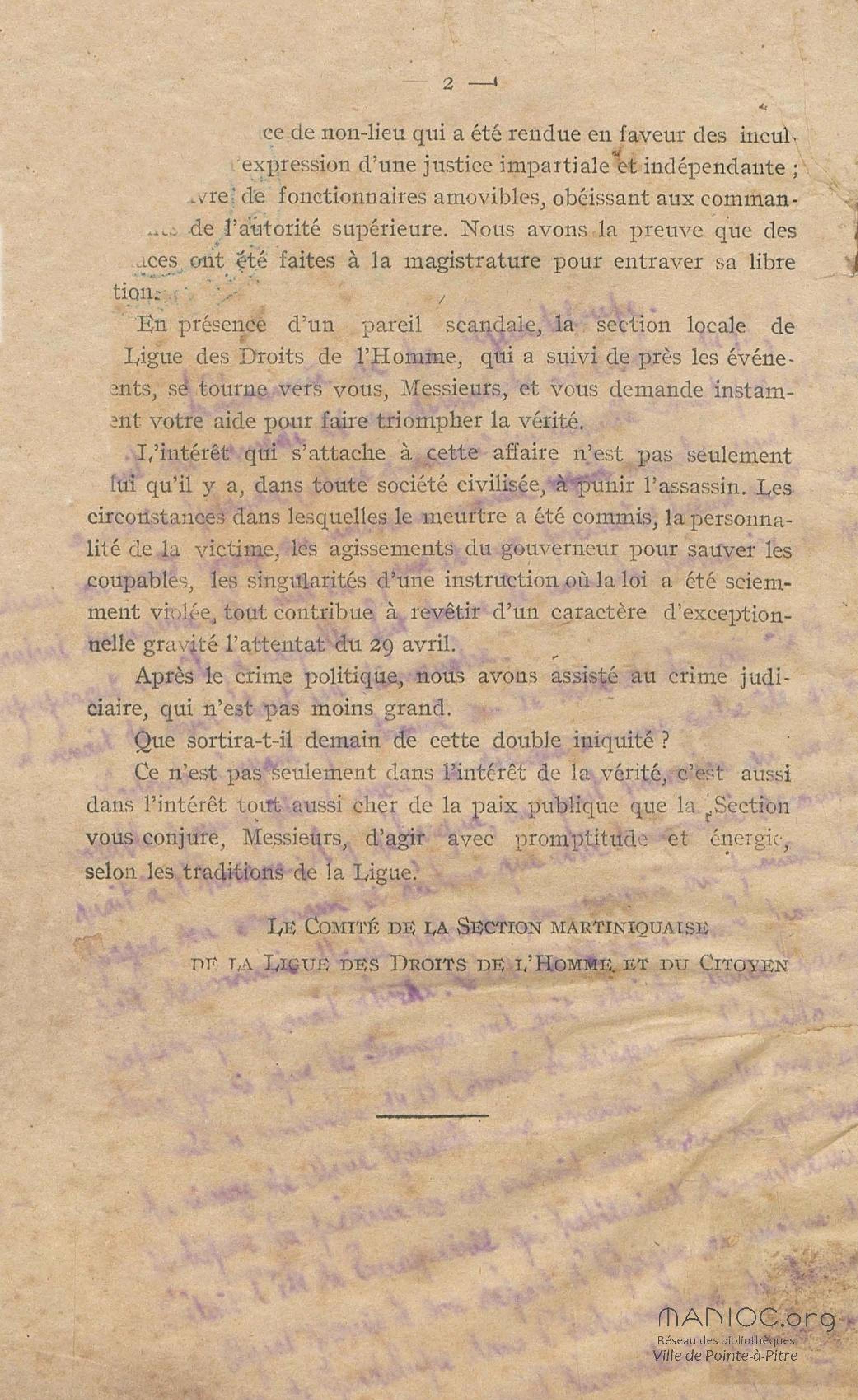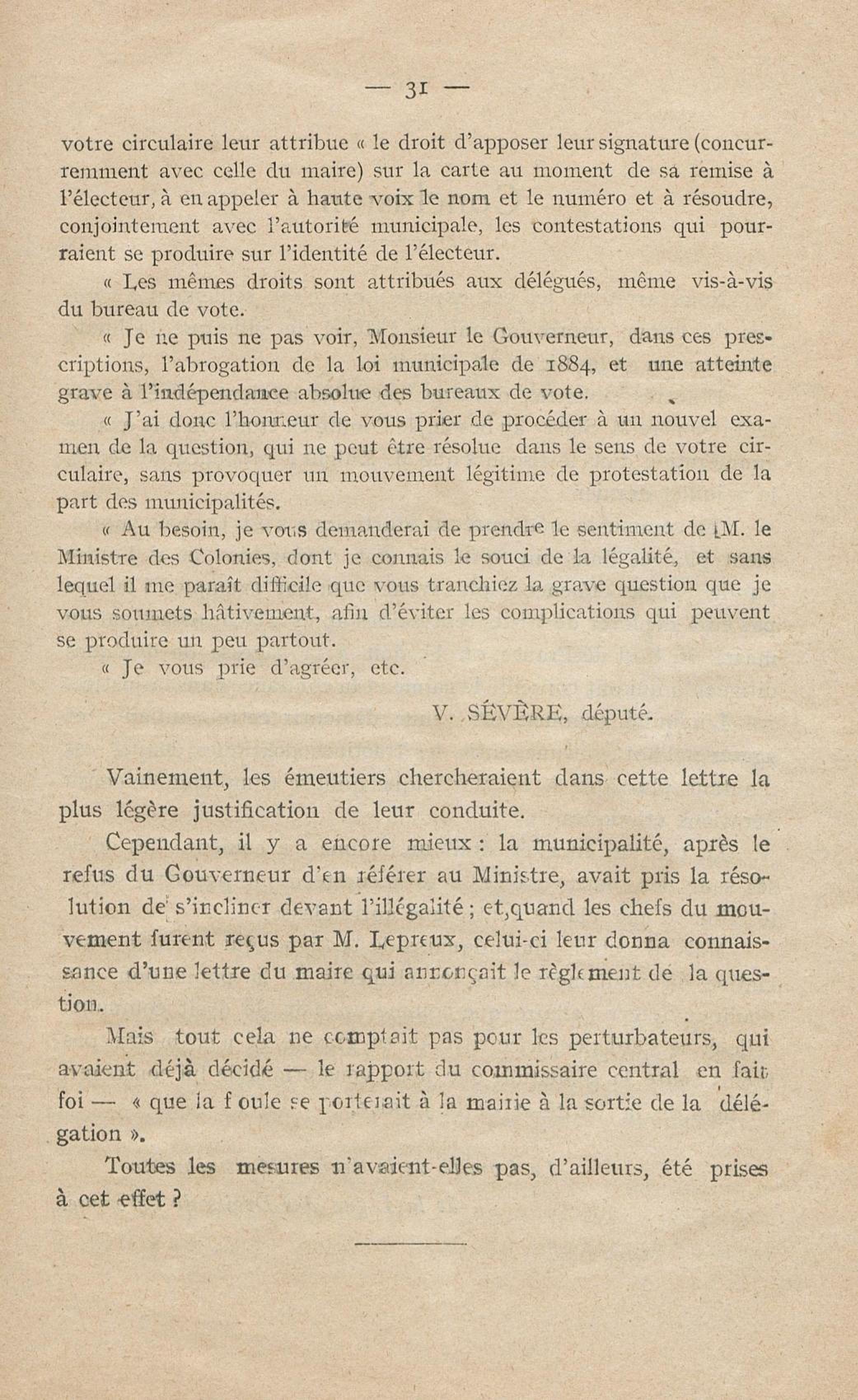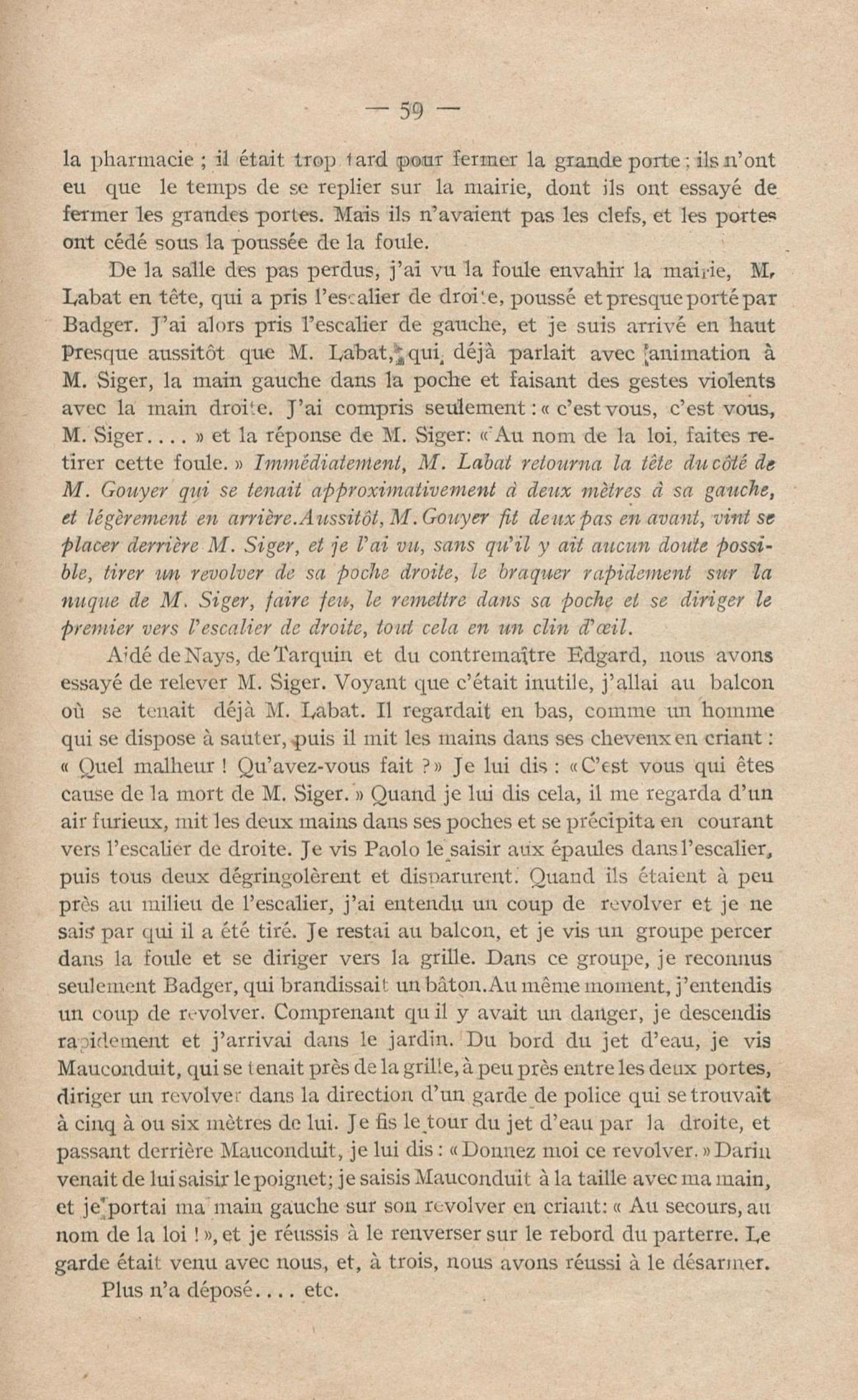 Conditions dans lesquelles s'est faite l'instruction du meurtre de M. Siger, Maire de Fort-de-France