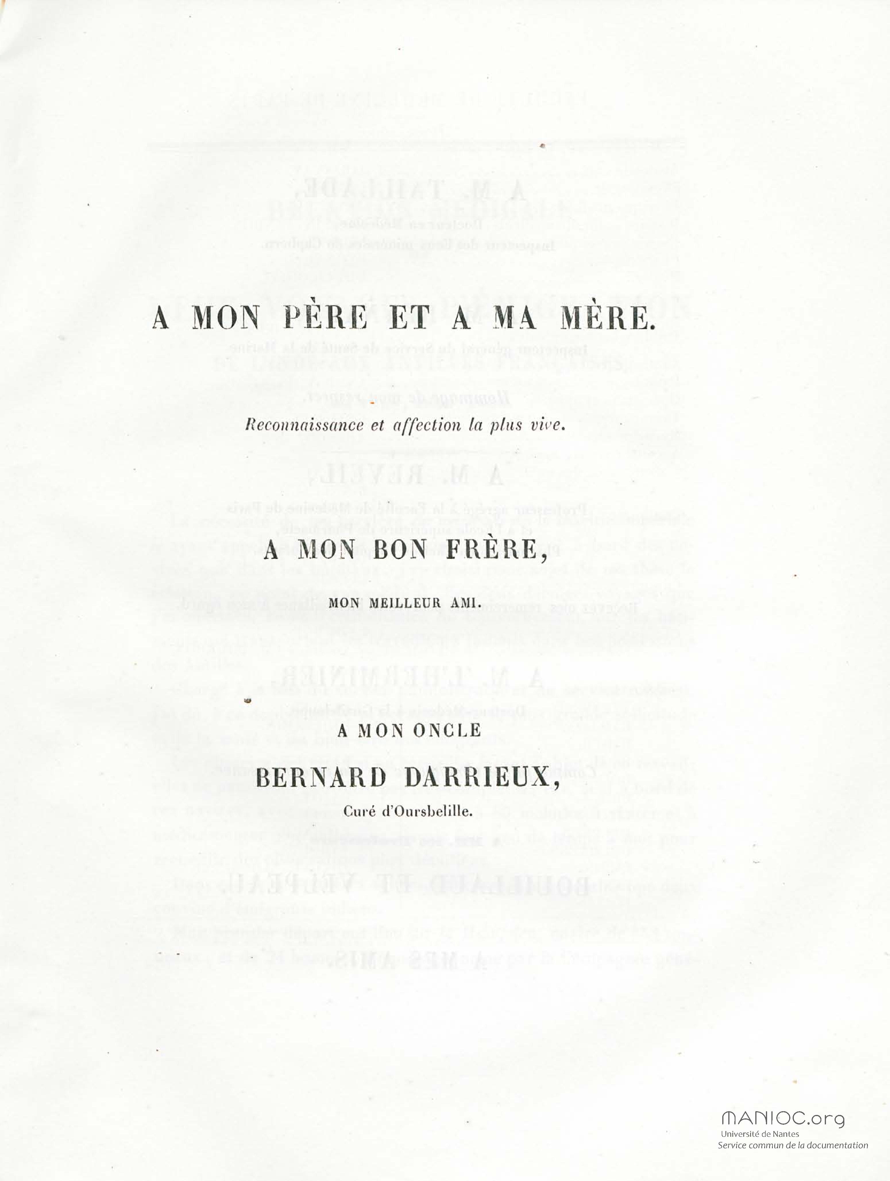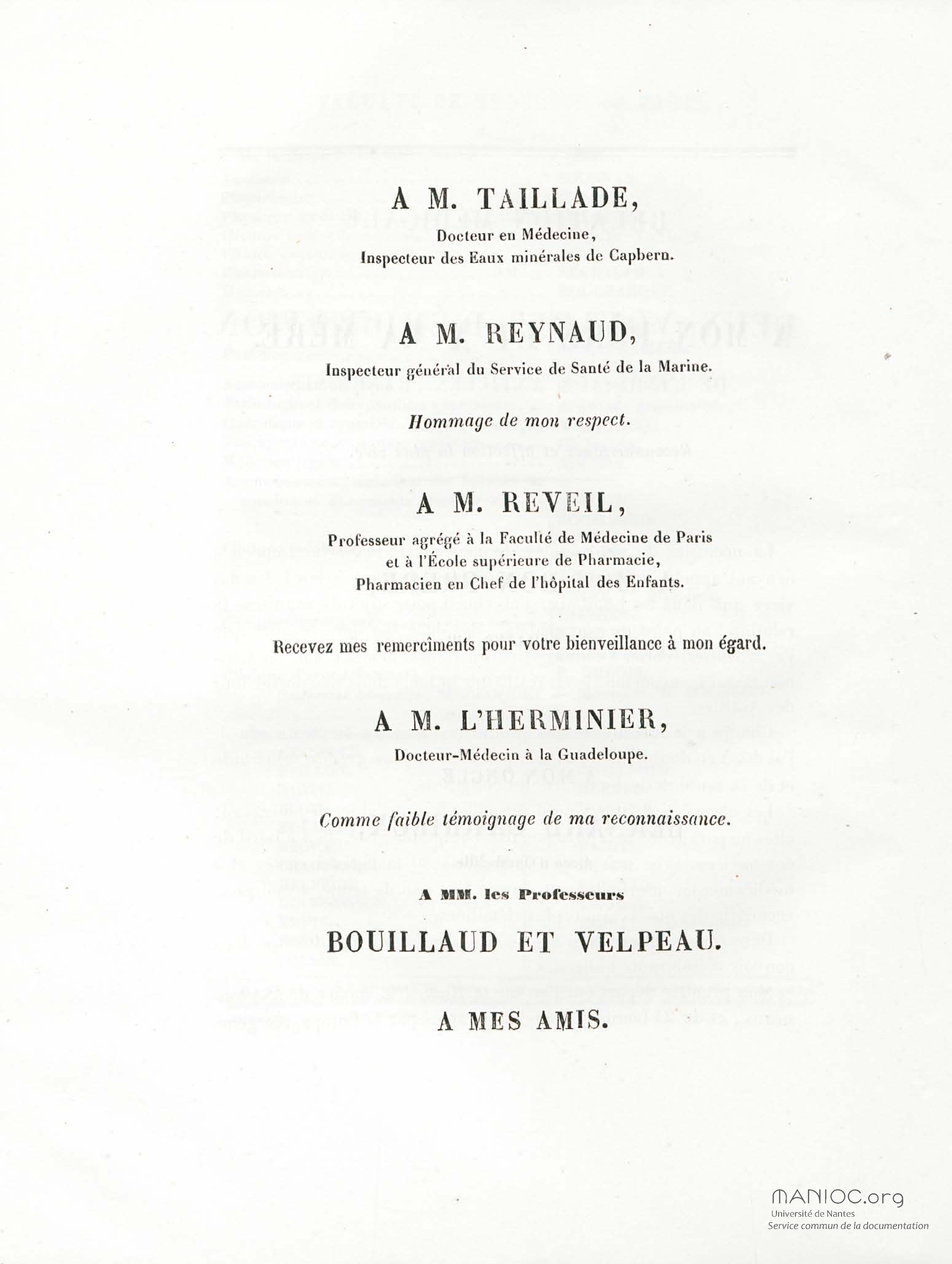 "Document inclus dans un recueil. La page de titre du recueil porte la mention "De l'emploi thérapeutique de l'alcool" de Philippe Rillaud"