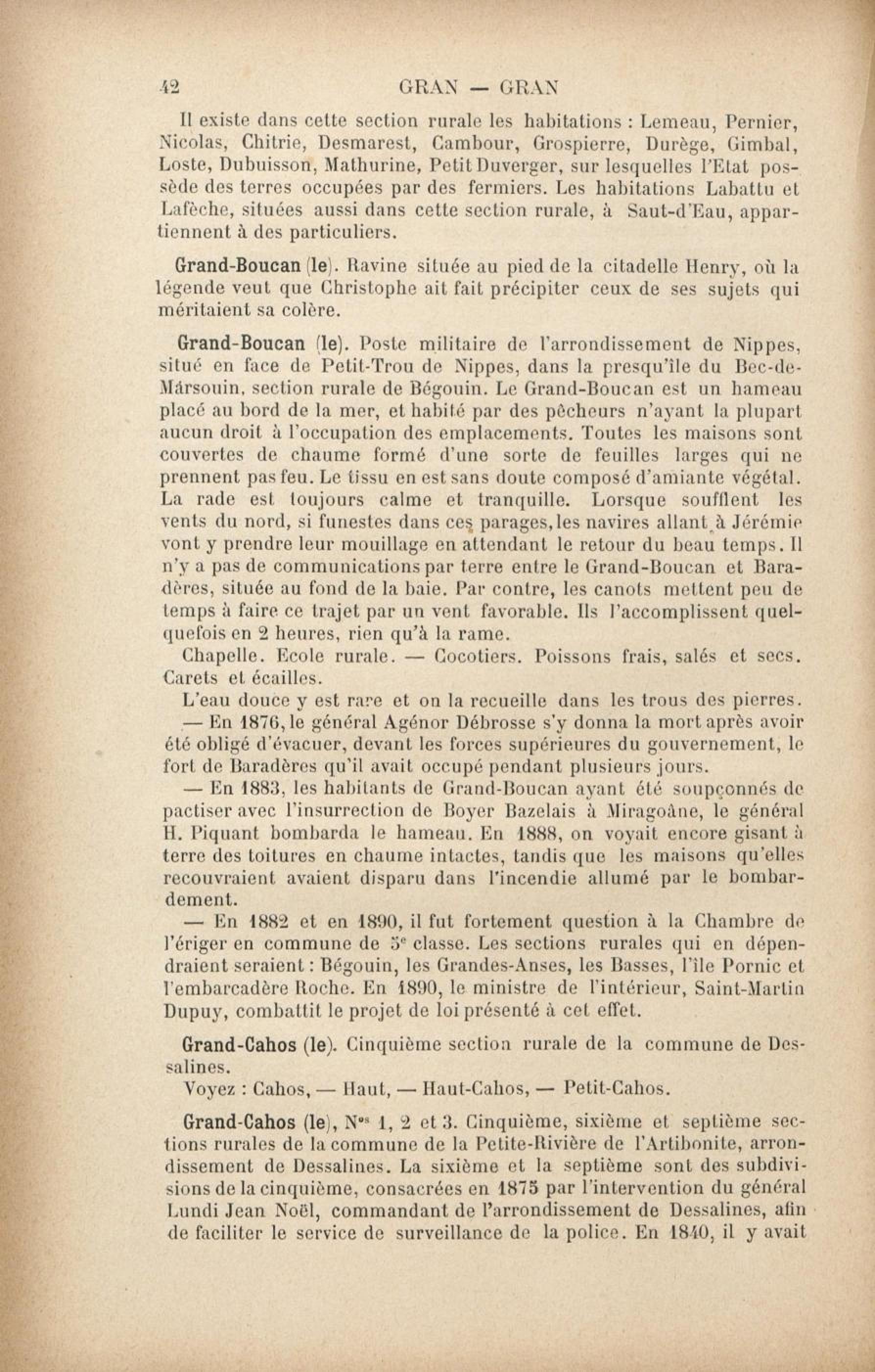 Fait partie de Dictionnaire géographique et administratif universel d'Haïti illustré... ou Guide général en Haïti : avec gravures, illustrations, plans, cartes et vues dans le texte, et une carte coloriée de l'île d'Haïti. Tome 2, G à H