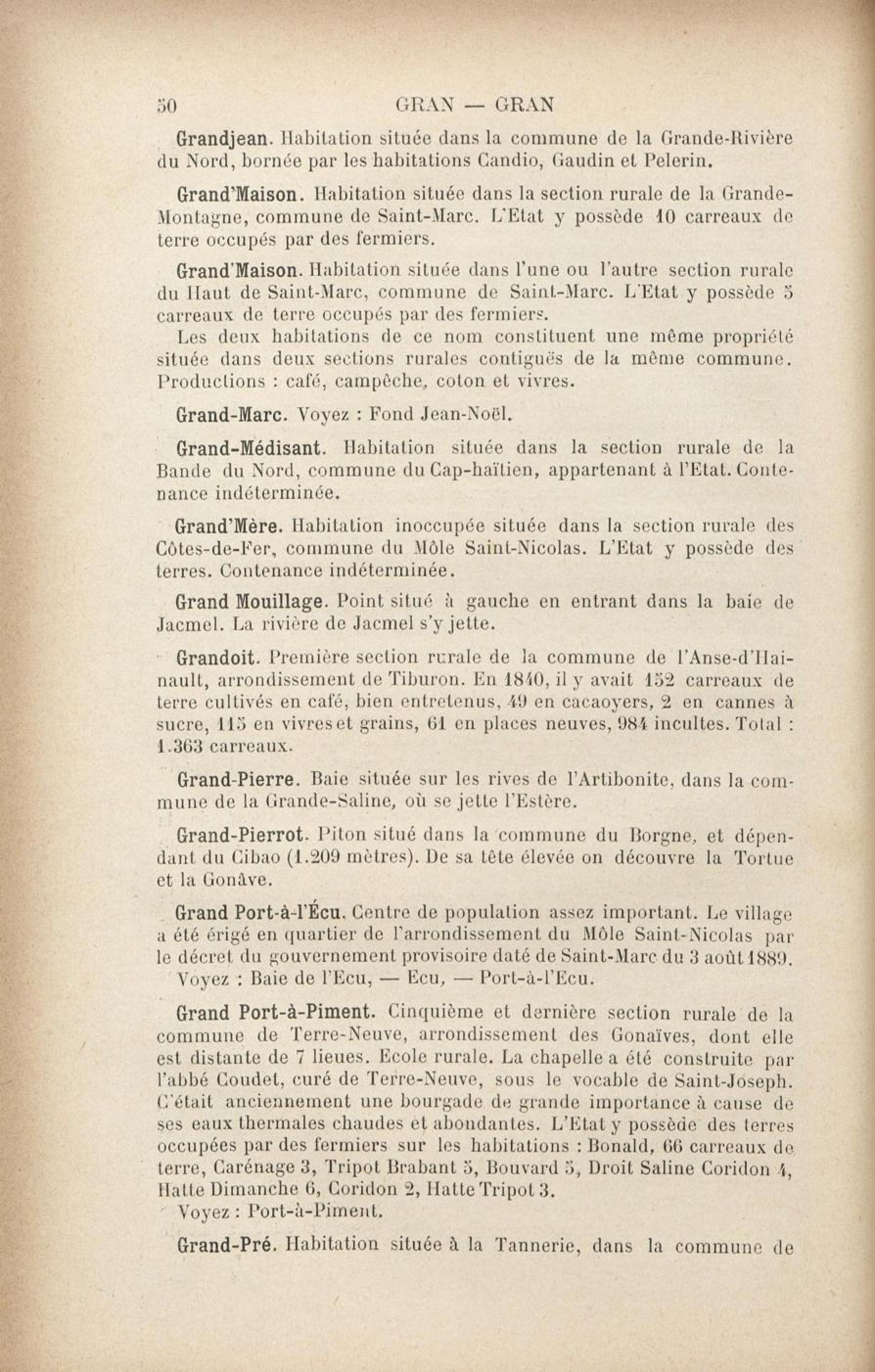 Fait partie de Dictionnaire géographique et administratif universel d'Haïti illustré... ou Guide général en Haïti : avec gravures, illustrations, plans, cartes et vues dans le texte, et une carte coloriée de l'île d'Haïti. Tome 2, G à H