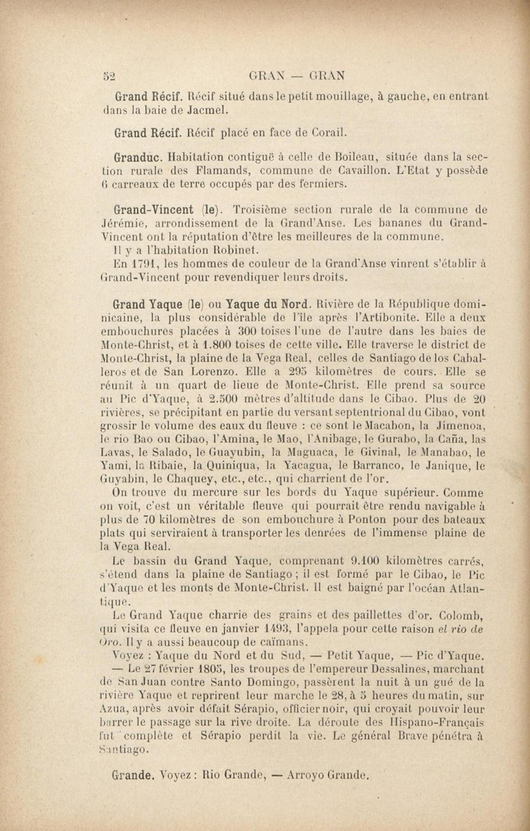 Fait partie de Dictionnaire géographique et administratif universel d'Haïti illustré... ou Guide général en Haïti : avec gravures, illustrations, plans, cartes et vues dans le texte, et une carte coloriée de l'île d'Haïti. Tome 2, G à H