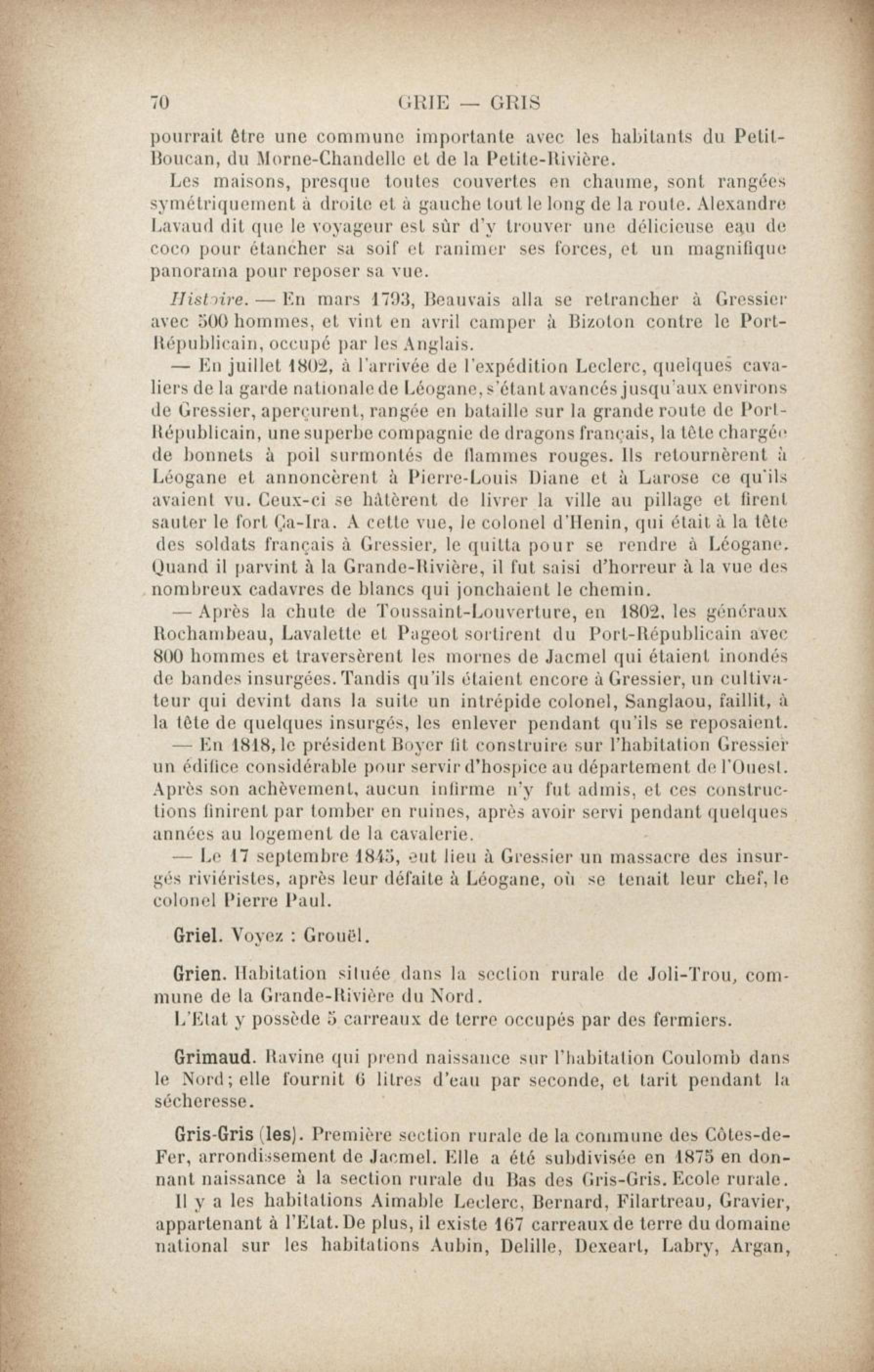 Fait partie de Dictionnaire géographique et administratif universel d'Haïti illustré... ou Guide général en Haïti : avec gravures, illustrations, plans, cartes et vues dans le texte, et une carte coloriée de l'île d'Haïti. Tome 2, G à H