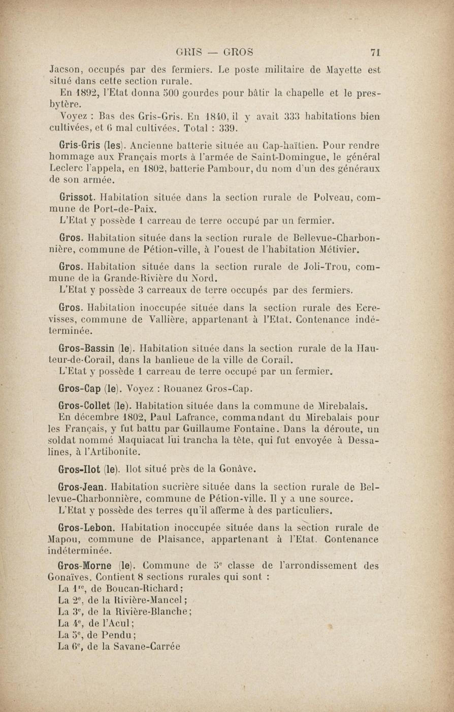Fait partie de Dictionnaire géographique et administratif universel d'Haïti illustré... ou Guide général en Haïti : avec gravures, illustrations, plans, cartes et vues dans le texte, et une carte coloriée de l'île d'Haïti. Tome 2, G à H