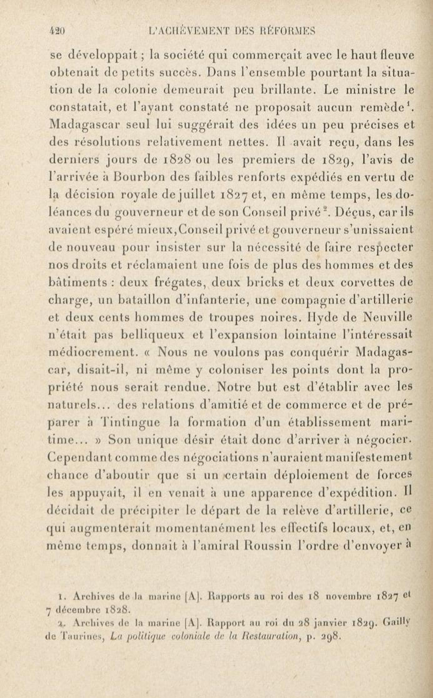 Fait partie de La France moderne et le problème colonial.[1], Les traditions et les idées nouvelles, la réorganisation administrative, la reprise de l'expansion : 1815-1830