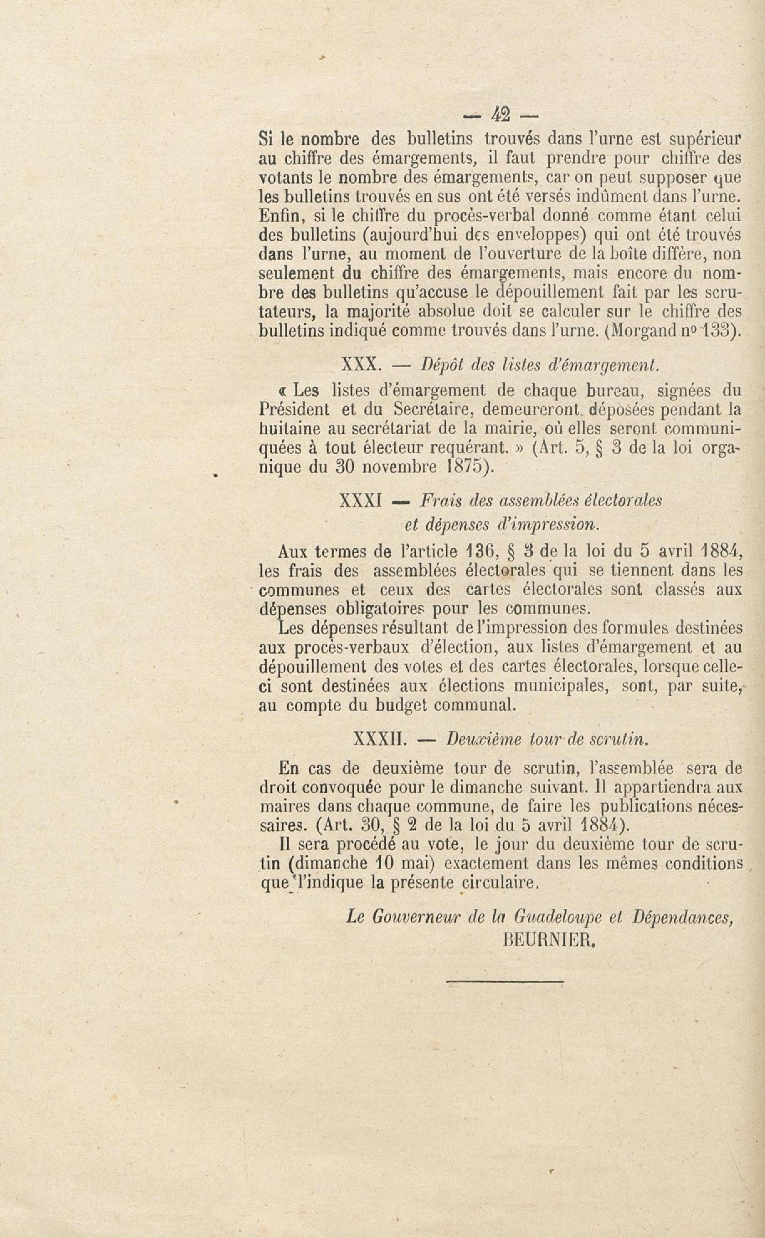 Fait partie de Gouvernement de la Guadeloupe et Dépendances. Instructions sur : 1. la révision annuelle des listes électorales ; 2. les élections municipales ; 3. les élections cantonales ; 4. les élections législatives