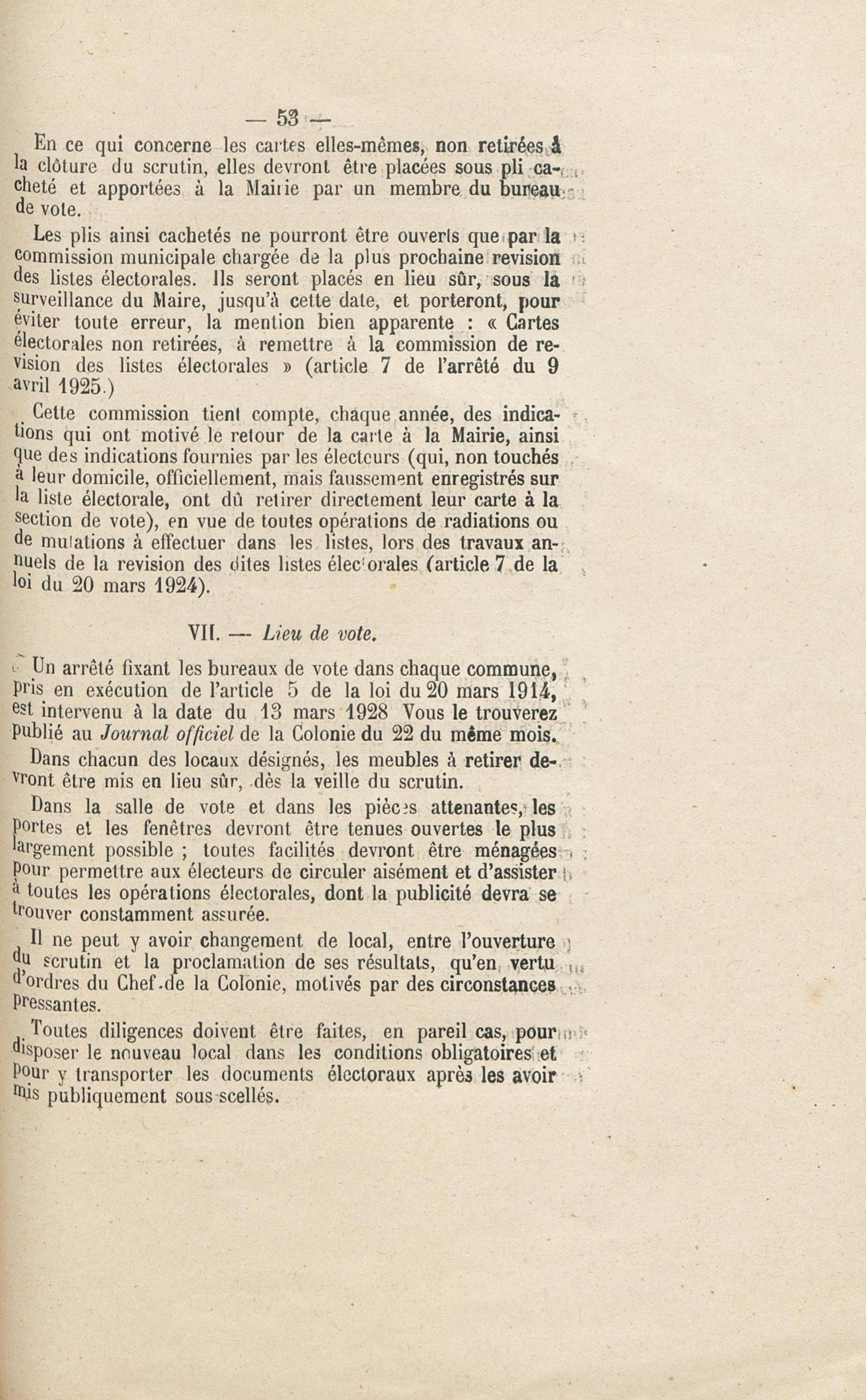 Fait partie de Gouvernement de la Guadeloupe et Dépendances. Instructions sur : 1. la révision annuelle des listes électorales ; 2. les élections municipales ; 3. les élections cantonales ; 4. les élections législatives