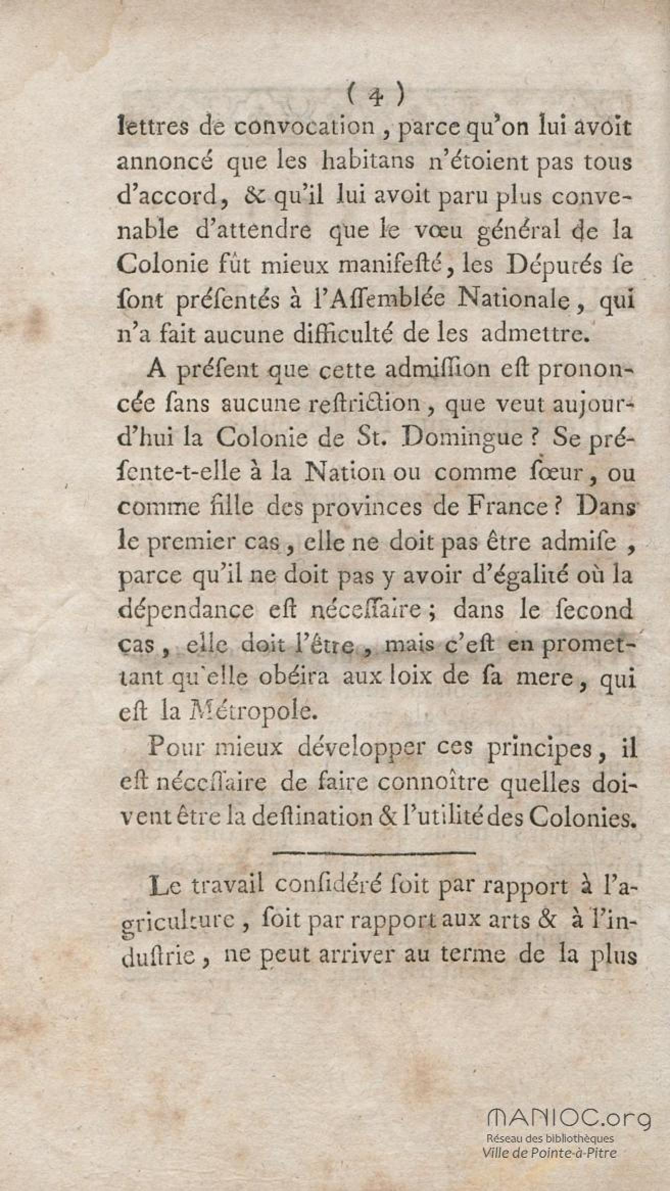 Fait partie de Réflexions d'un administrateur, sur l'admission des députés de St. Domingue aux Etats-Généraux, et sur le régime nouveau qu'ils veulent établir dans cette colonie
